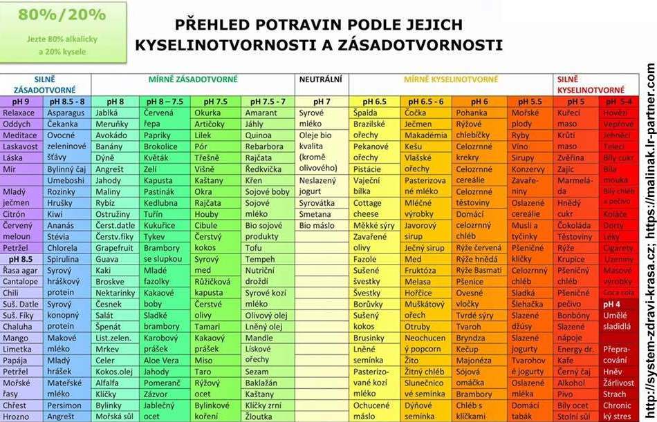Čemu bychom měli dávat přednost ukazuje následující tabulka. Mimochodem víte, že v kyselém prostředí se daří např. rakovině?